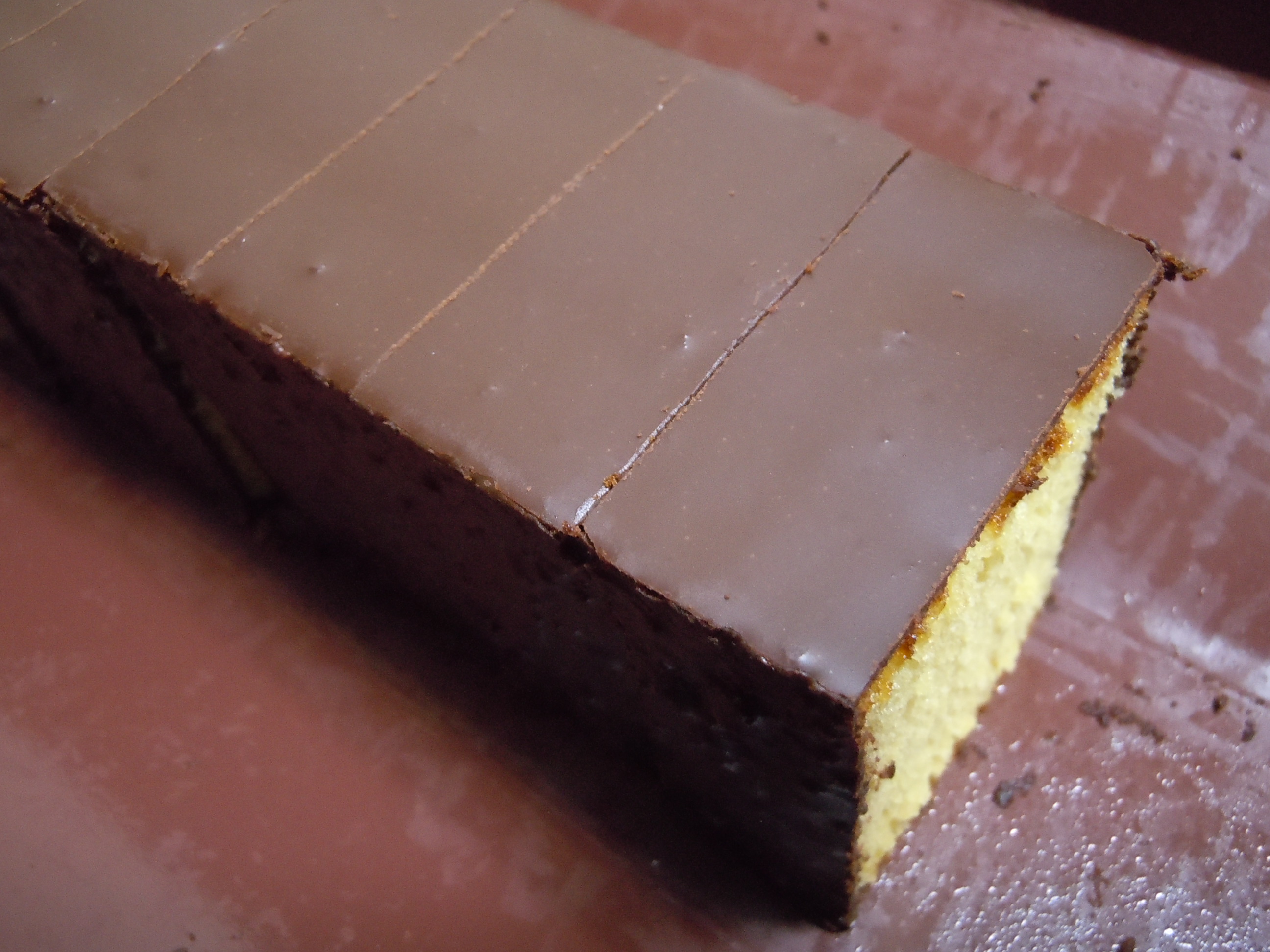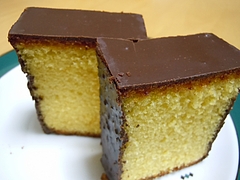 カステラに薄くチョコレートをコーティング!