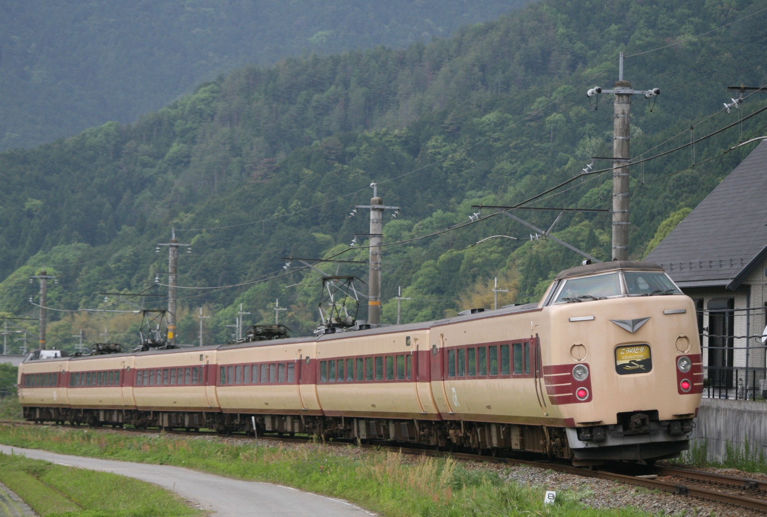 奥に停車中の381系特急こうのとり号
